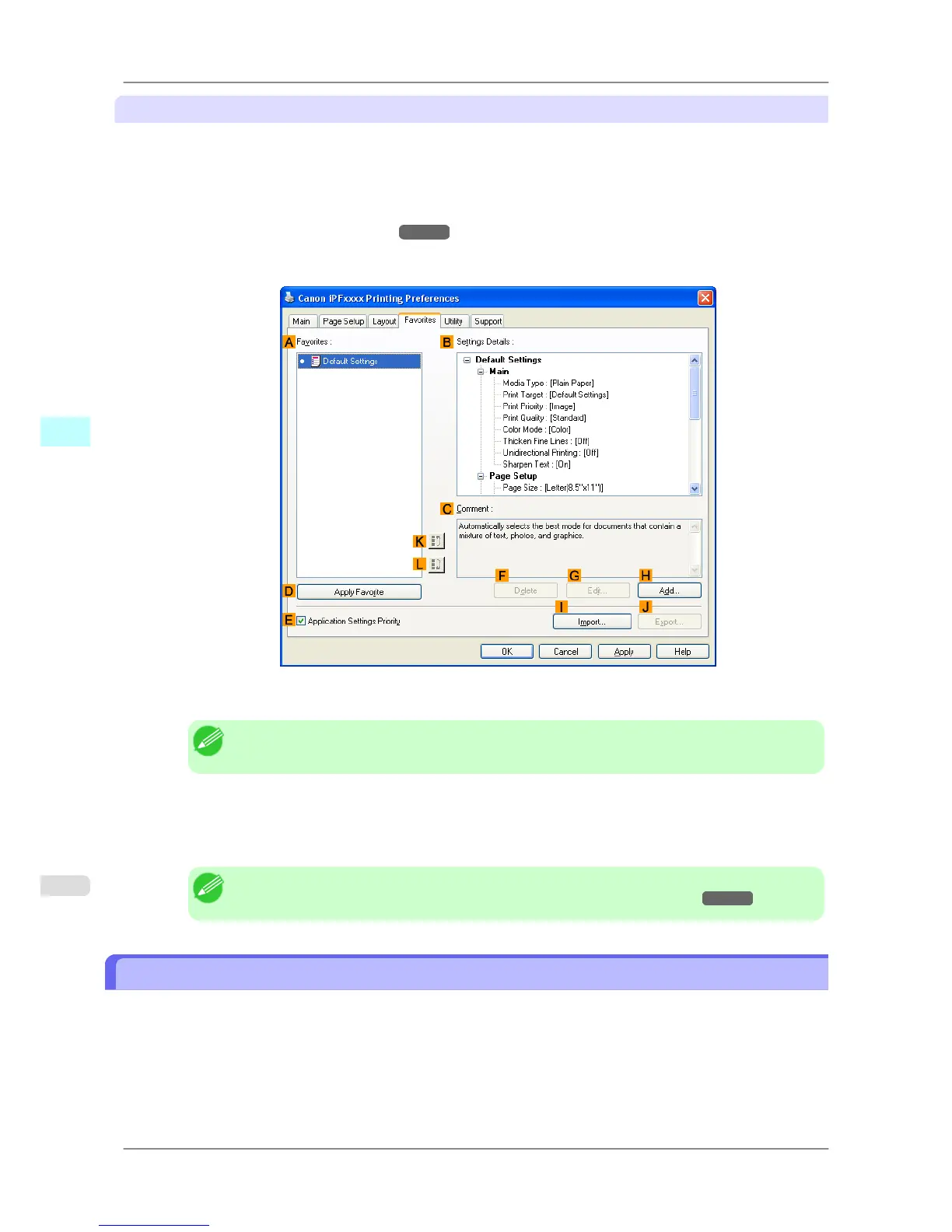 5. Click DApply Favorite to replace the favorite settings with the current print settings.
