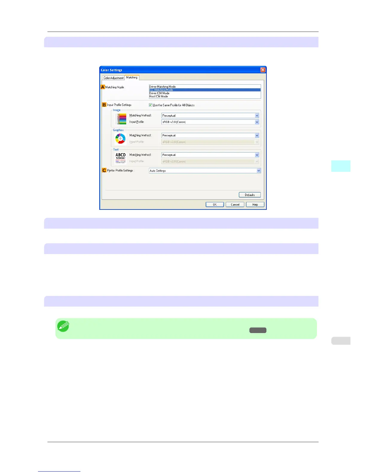 Select the color matching mode to use, as desired.