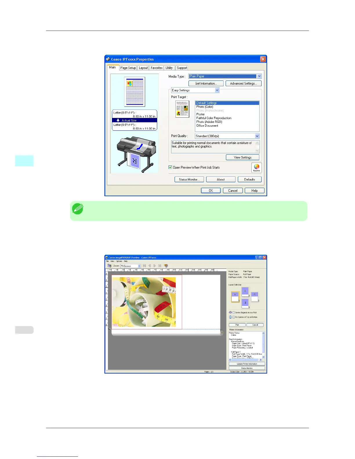• Your printer is depicted in the lower-left area of this screen.