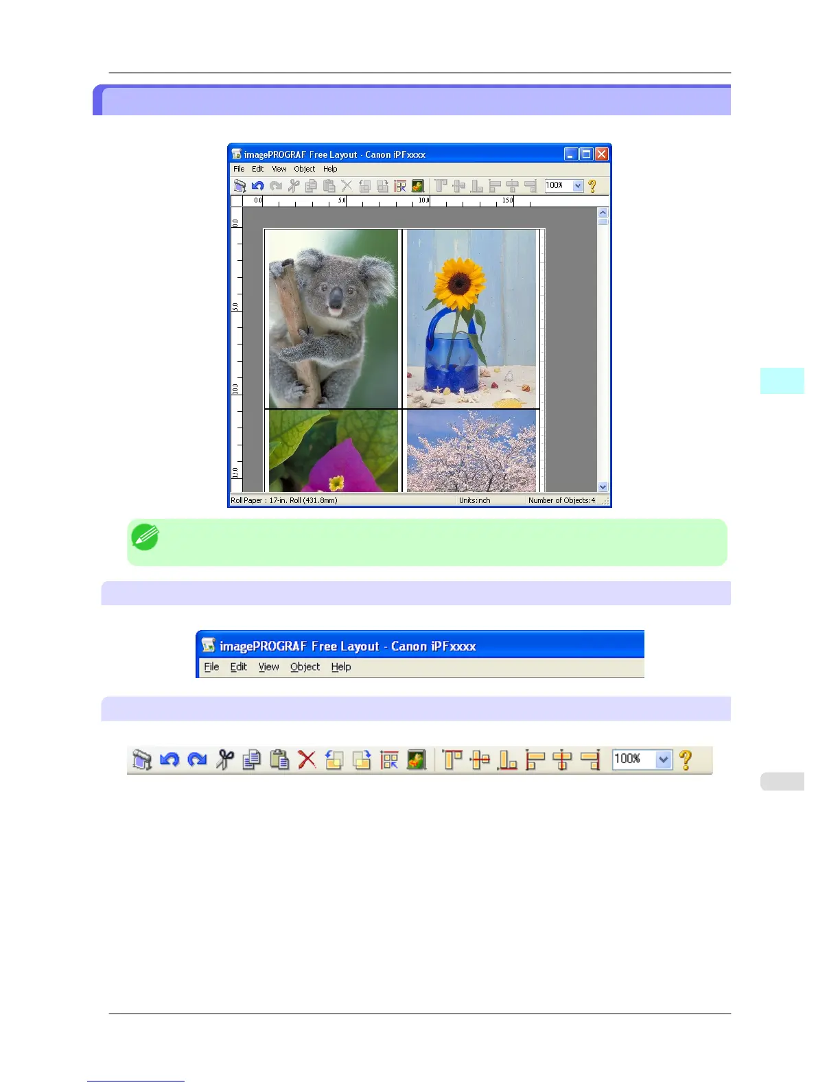The Free Layout main window consists of the menu and tool bars, layout area and status bar.