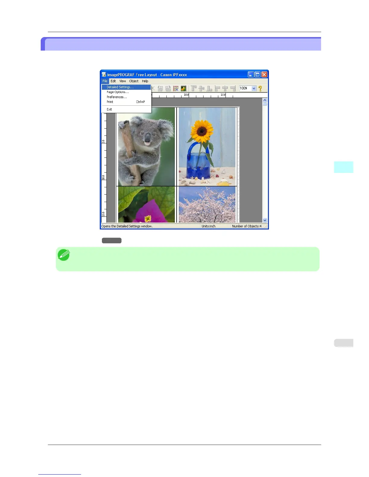 The printer driver opens when you select Detailed Settings from the File menu. The printer driver is used to configure