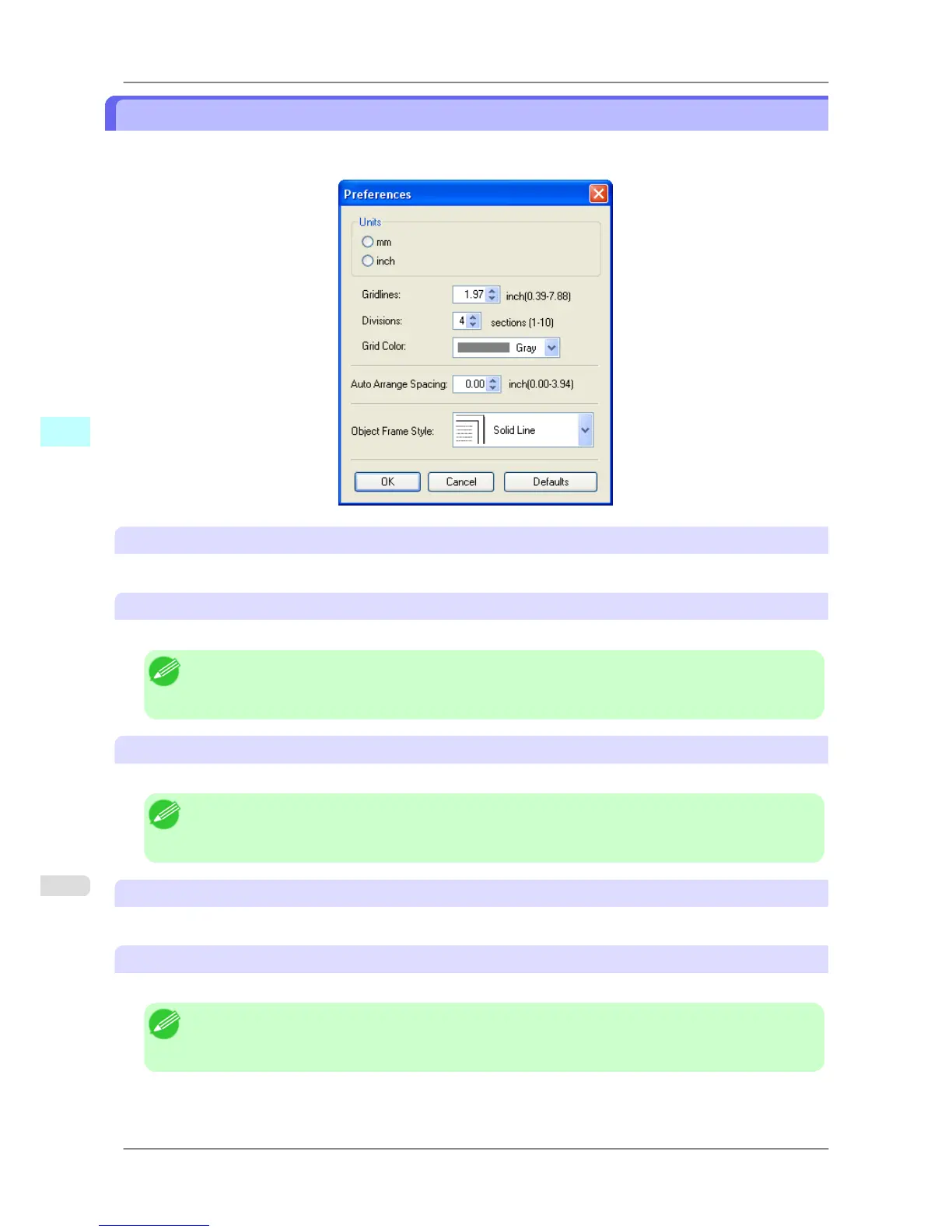 Preferences Dialog Box iPF825
