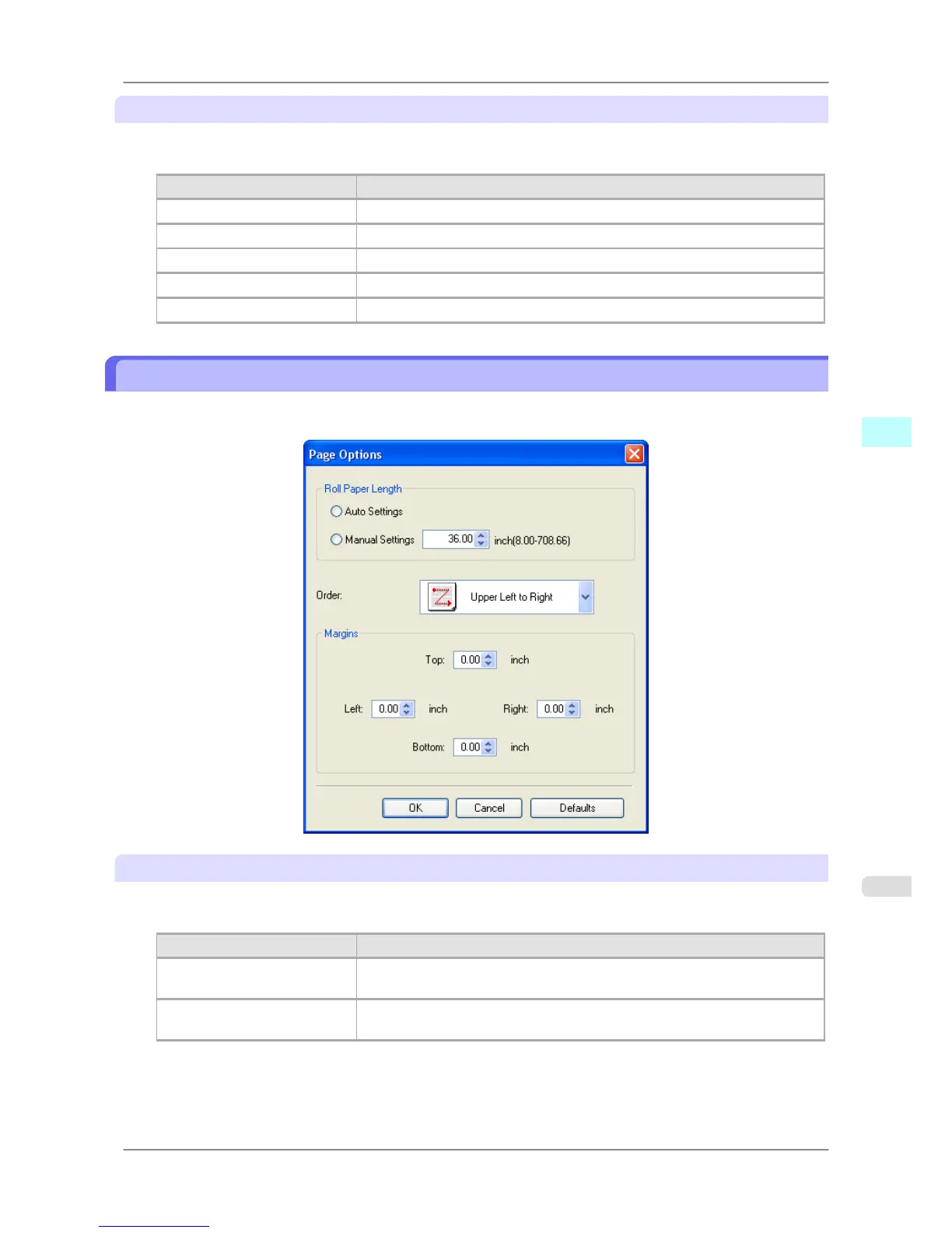 iPF825 Page Options Dialog Box