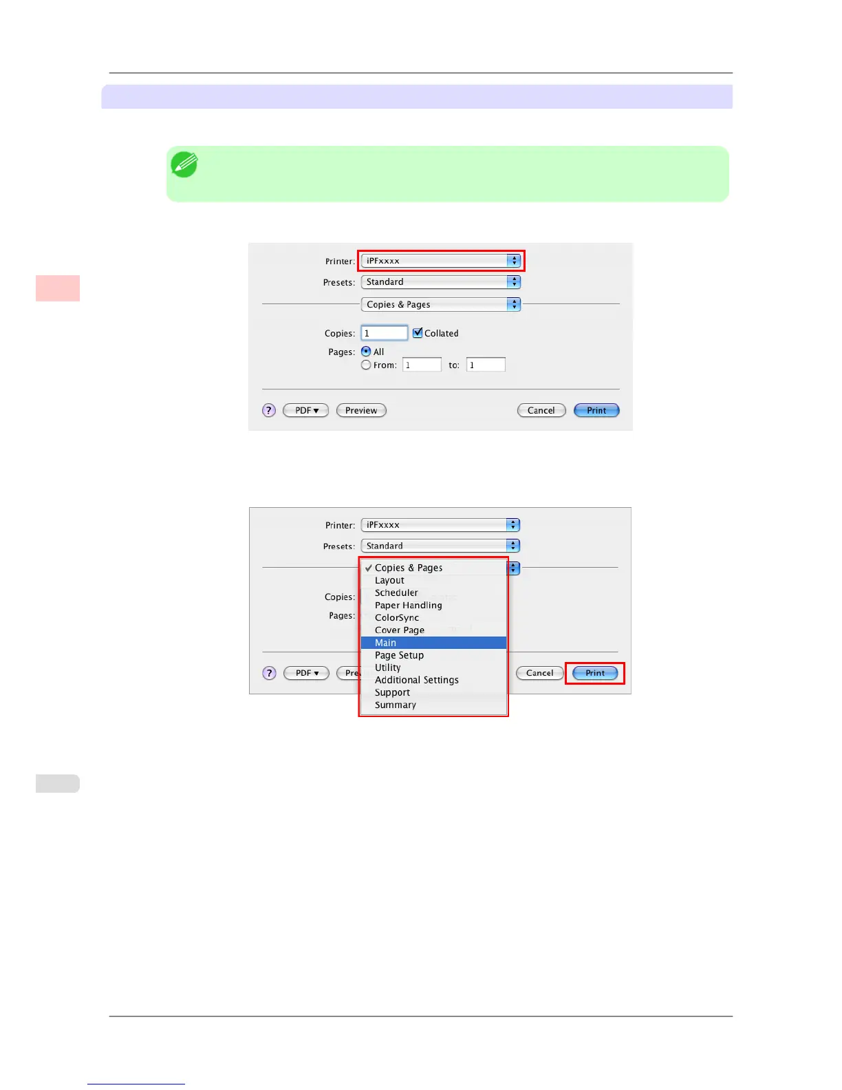Printing from Mac OS X iPF825