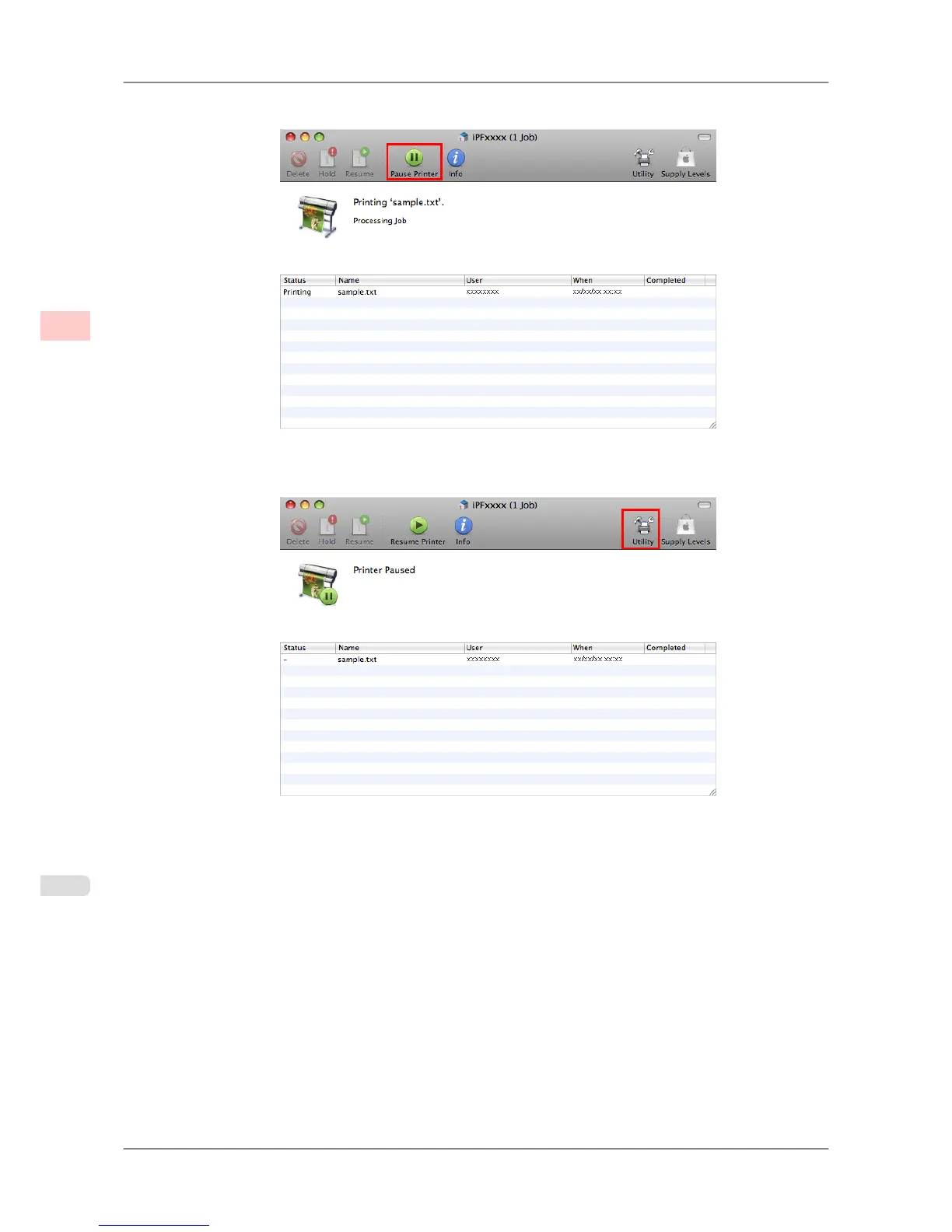 the printer), click Utility to display imagePROGRAF Printmonitor.