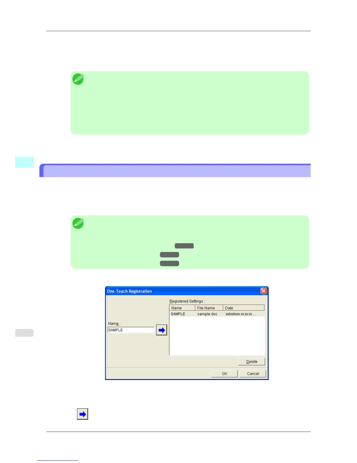 If you are going to print multiple times using the same setting, you can select One-Touch Registration. Registered