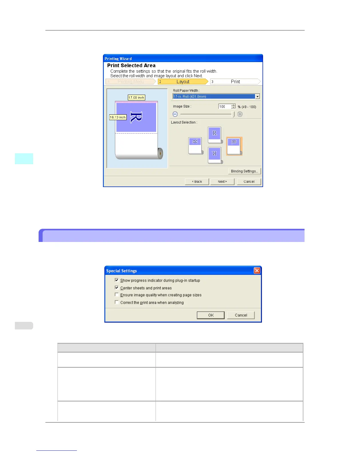 You can configure Special Settings from the imagePROGRAF Print Plug-In toolbar.