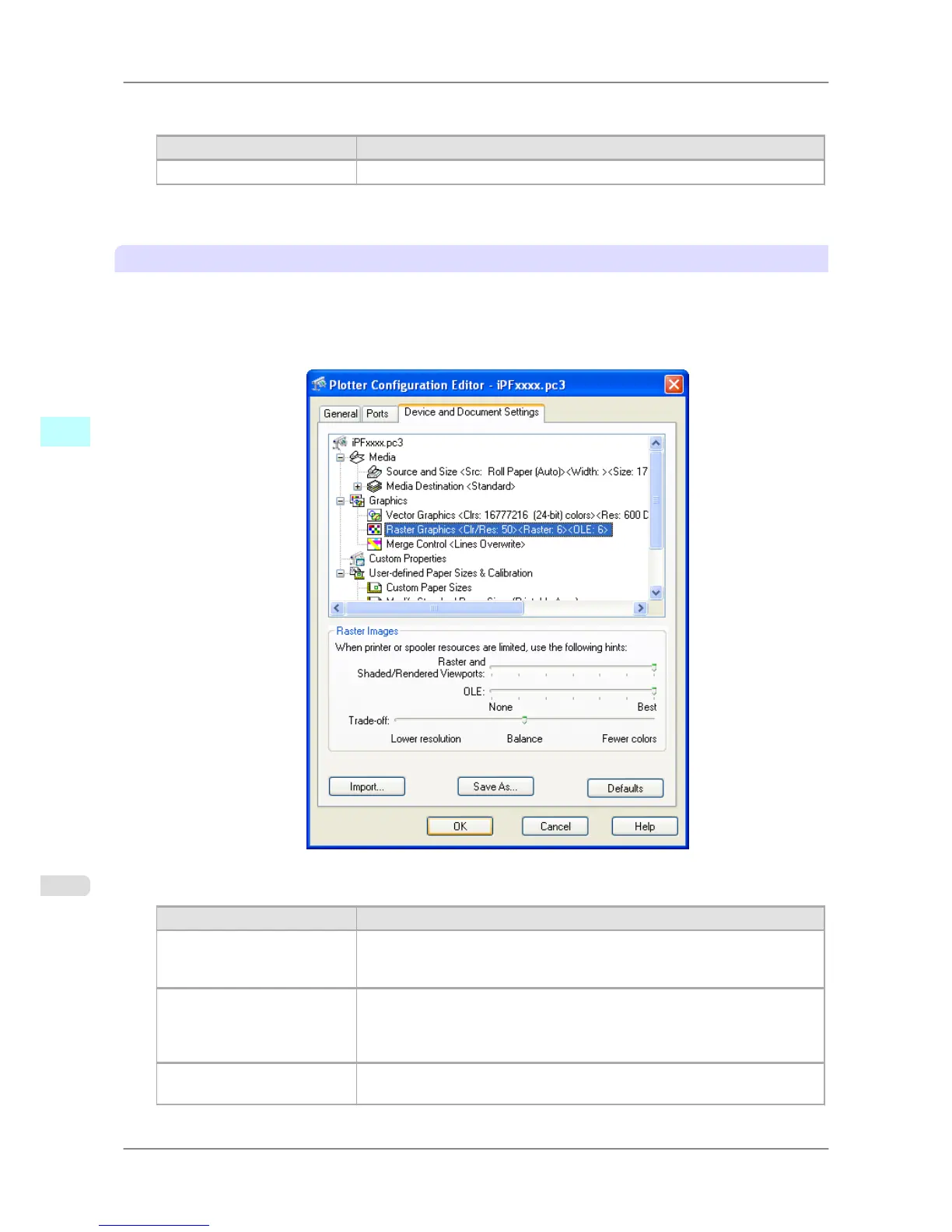 PUse these settings to adjust the balance between the print quality, memory consumption, and the print speed of raster