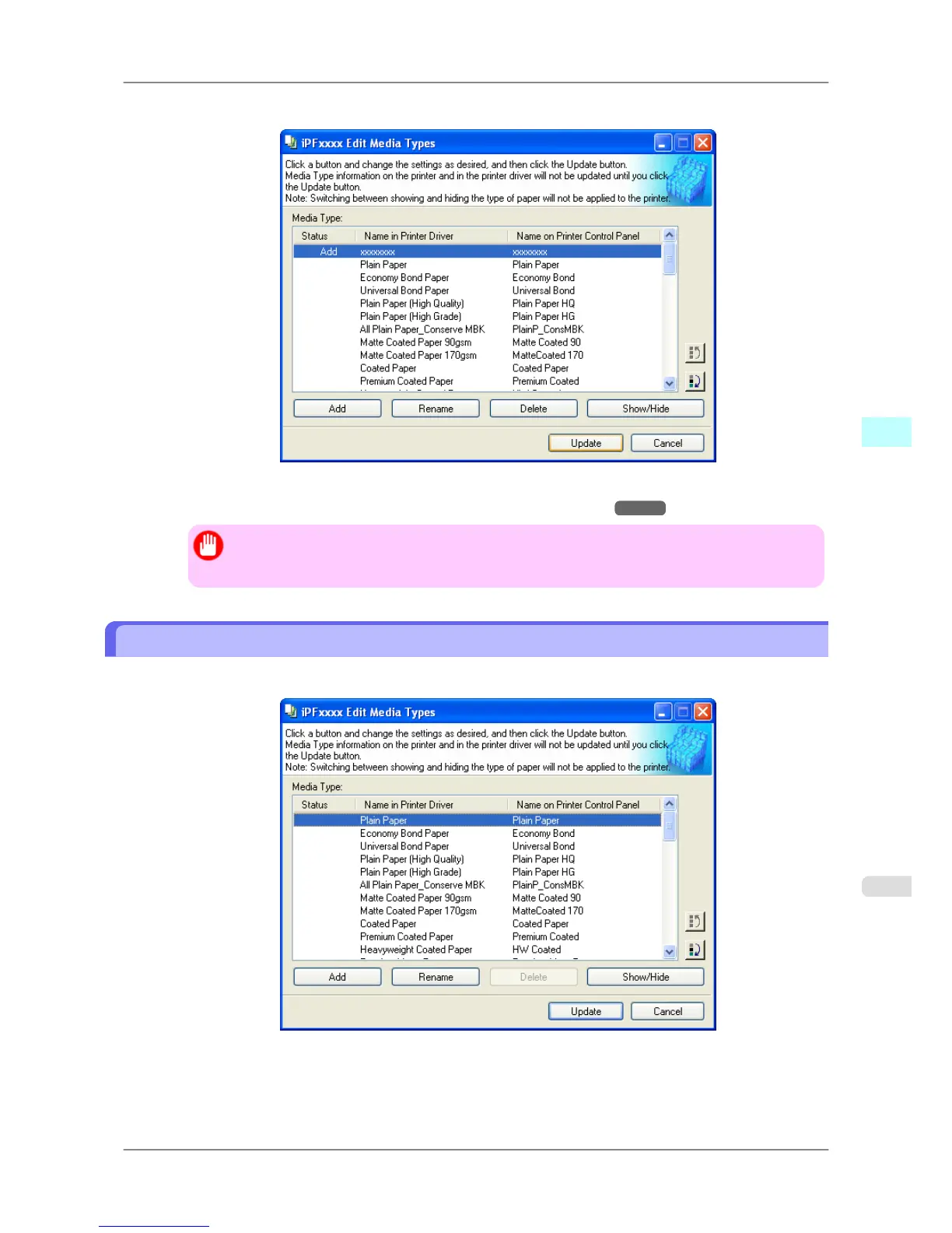 Media Types wizard is started at this point. For details on the procedure to update paper informa-