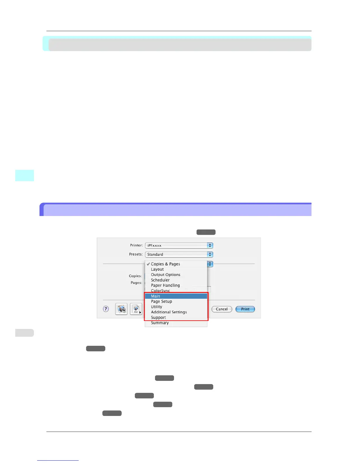 For information on the Mac OS X printer driver settings, refer to the following topics.