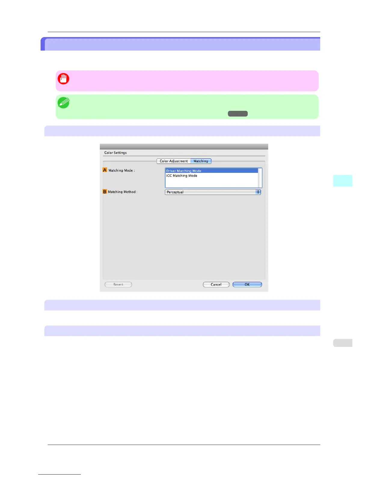 Select the color matching method that suits the document to be printed. Various BMatching Method options are