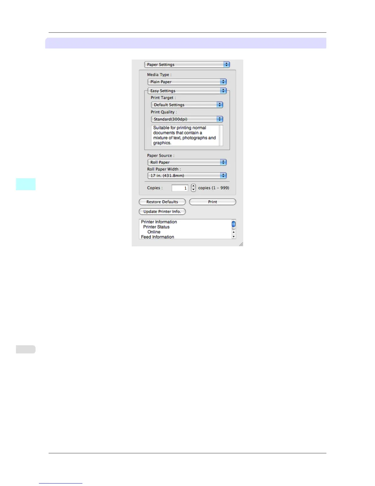 This allows you to set the print conditions and perform a print job.