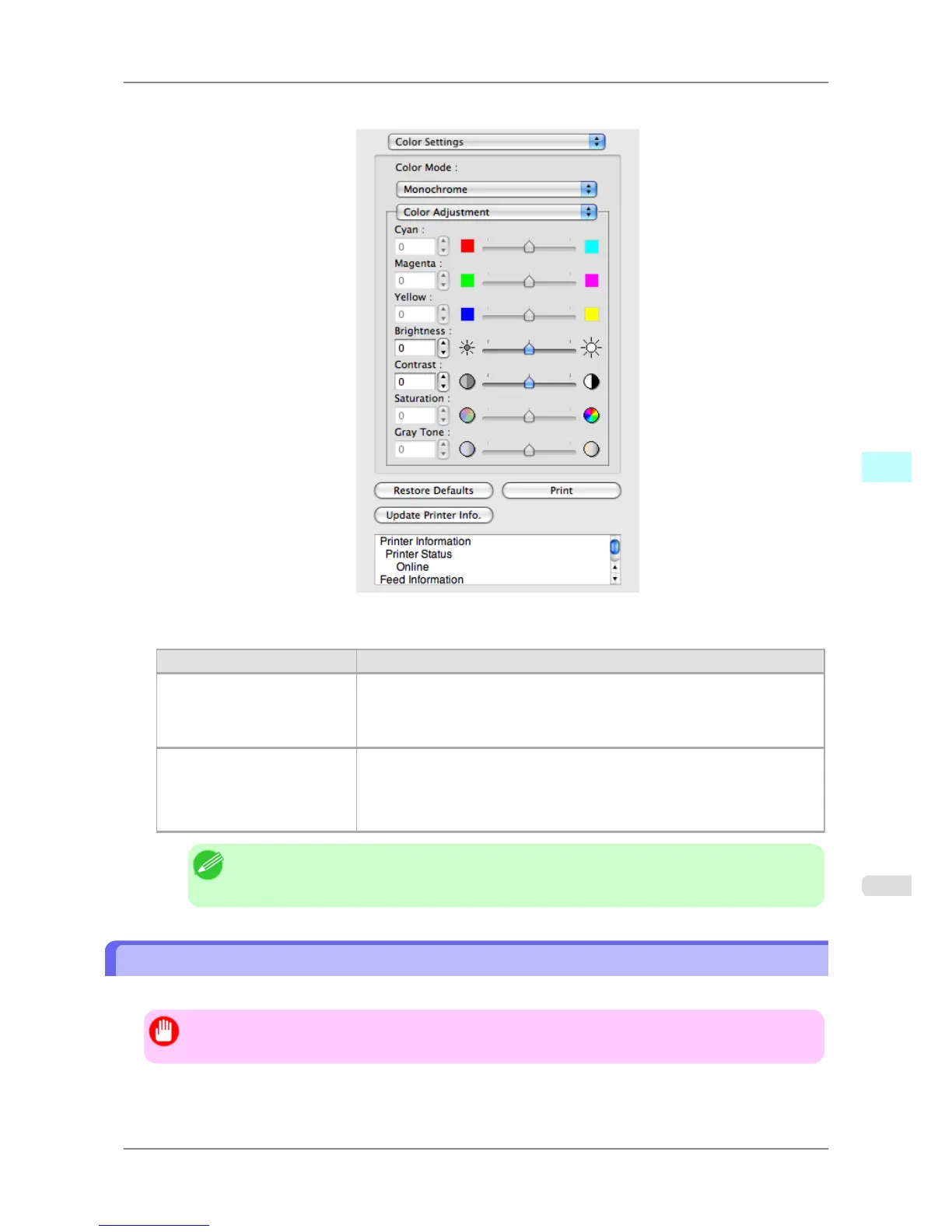 Brightness Adjusts the brightness of the entire image. When the results of the printout are
