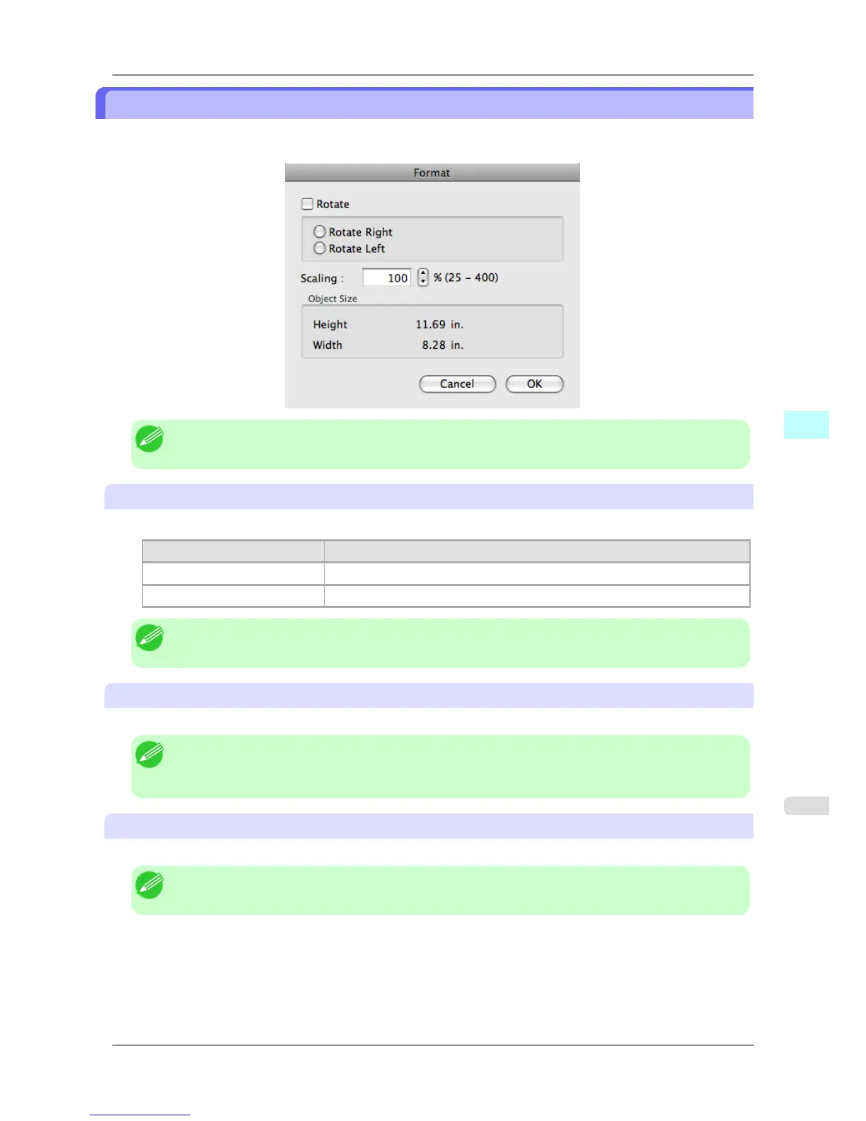 This dialog box appears when you select Format from the Object menu after you select an object. You can rotate,