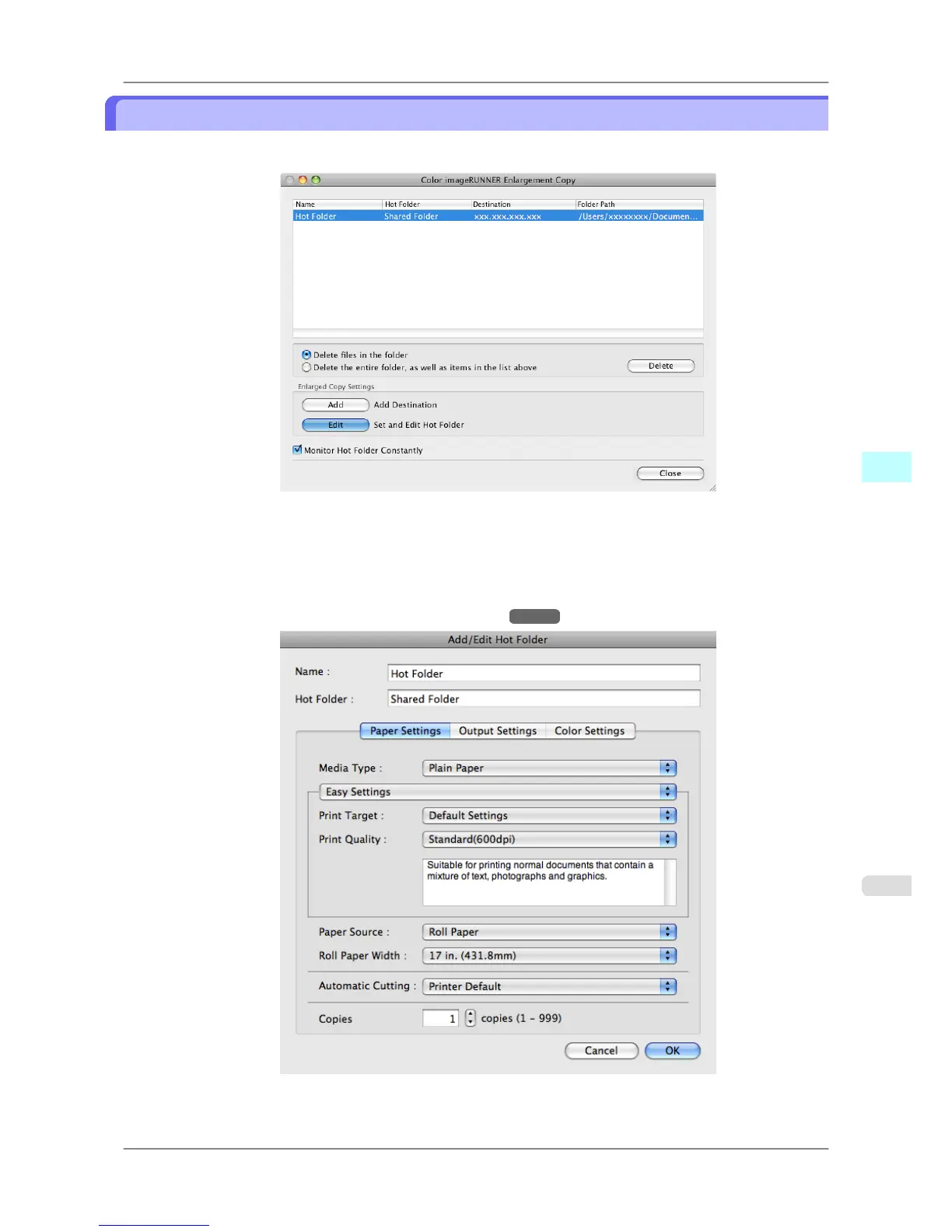 3. From Enlarged Copy Settings, click Edit button to open the Add/Edit Hot Folder dialog box.