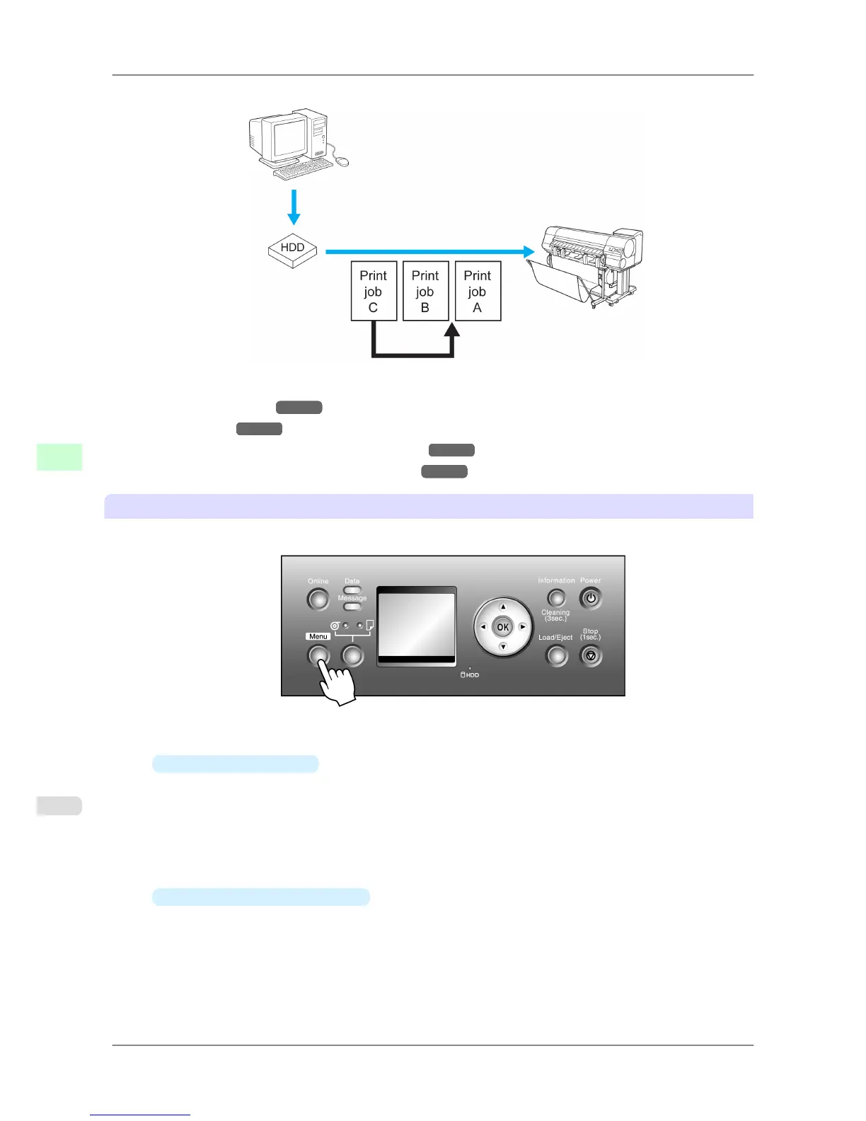3. Press ▲ or ▼ to select the job to print first, and then press the ▶ button.