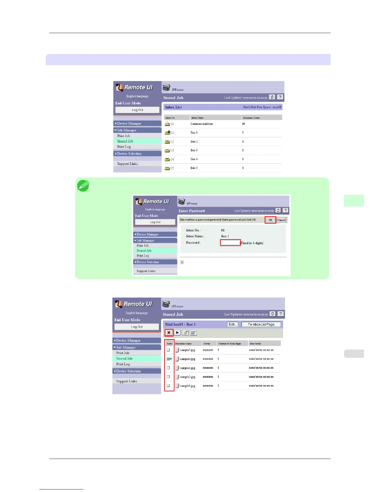 iPF825 Deleting Saved Jobs