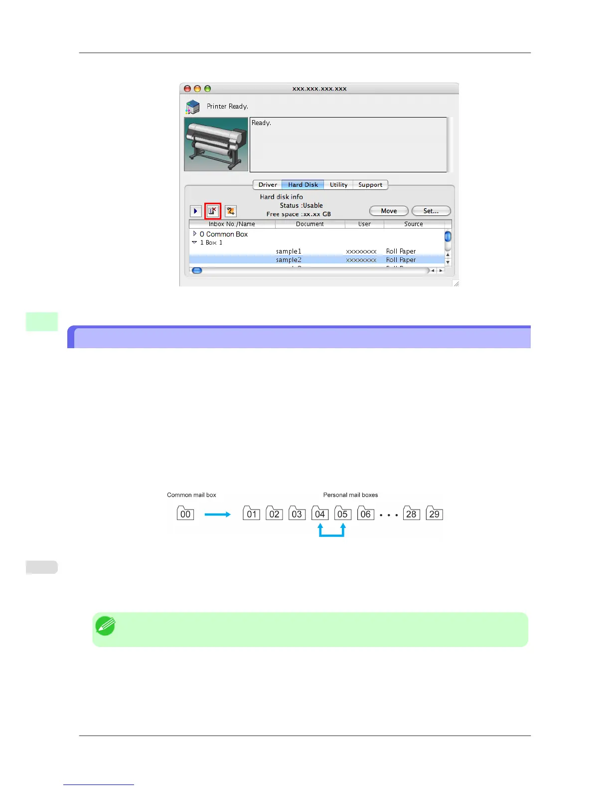 saved in the common box, number 00. However, jobs in this mail box will be deleted one after another starting with the