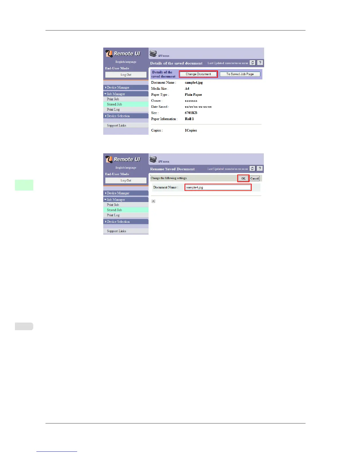 4. On the Rename Saved Document page, enter the new job name in Document Name and click OK.