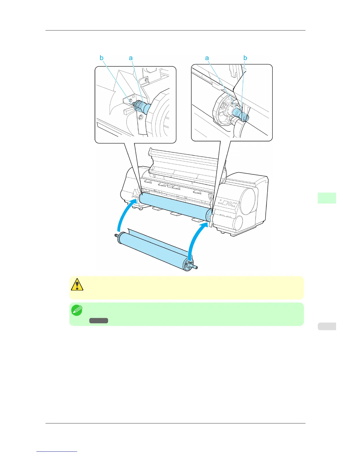 careful not to pinch your fingers between the Roll Holder shaft (a) and the guide grooves (b)