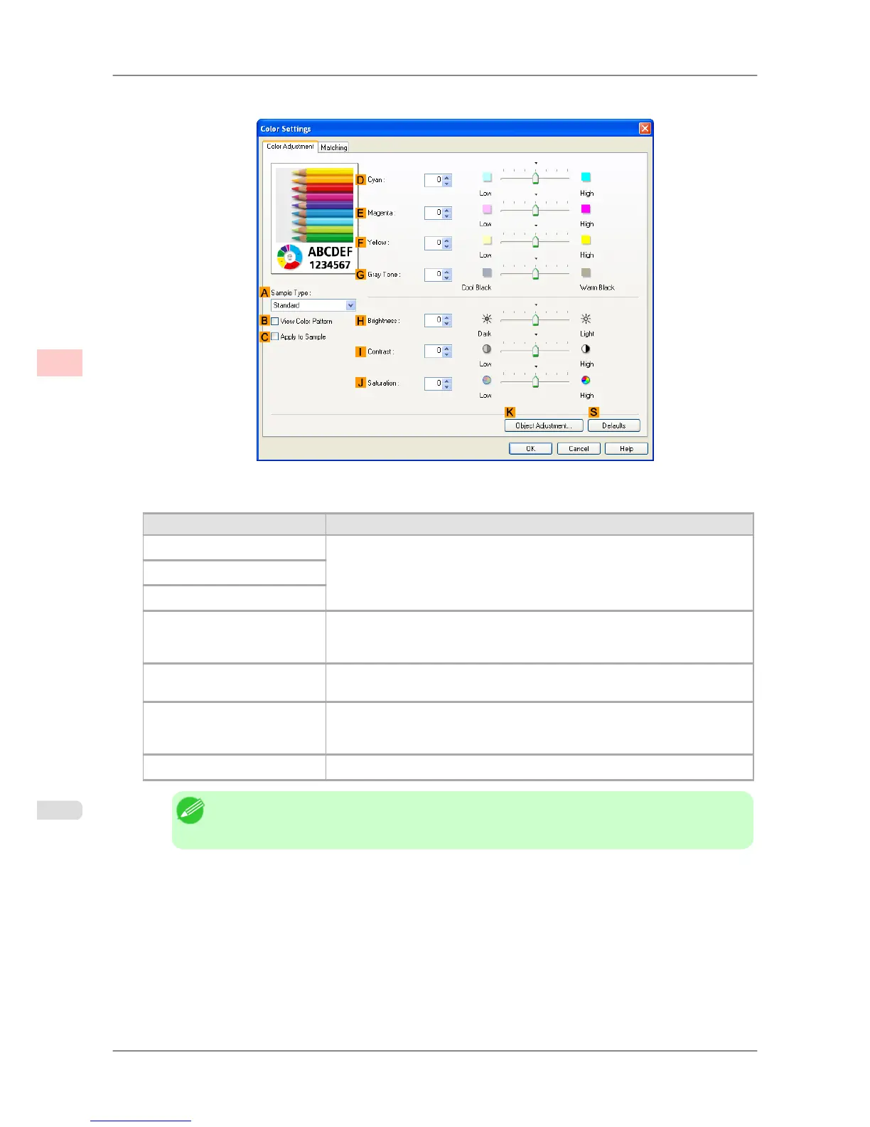 8. On the Color Adjustment sheet, adjust the color tones, brightness, and so on as desired.
