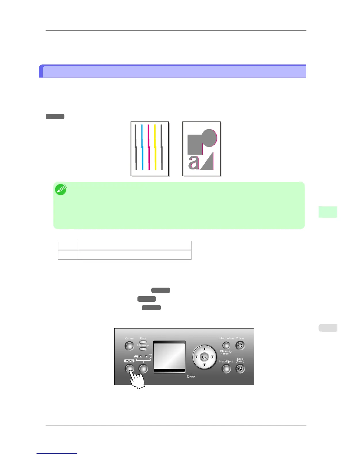 iPF825 Manual Straightening of Lines and Colors (Manual Head Adj)