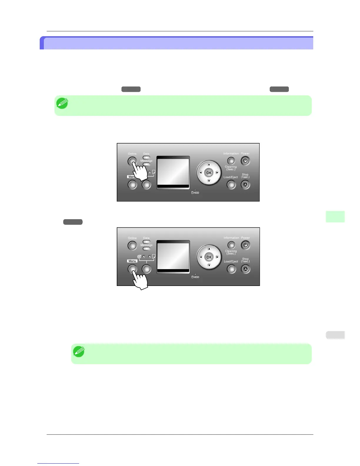 the Menu button to display the menu during printing. (See "Main Menu Settings (During Printing).")