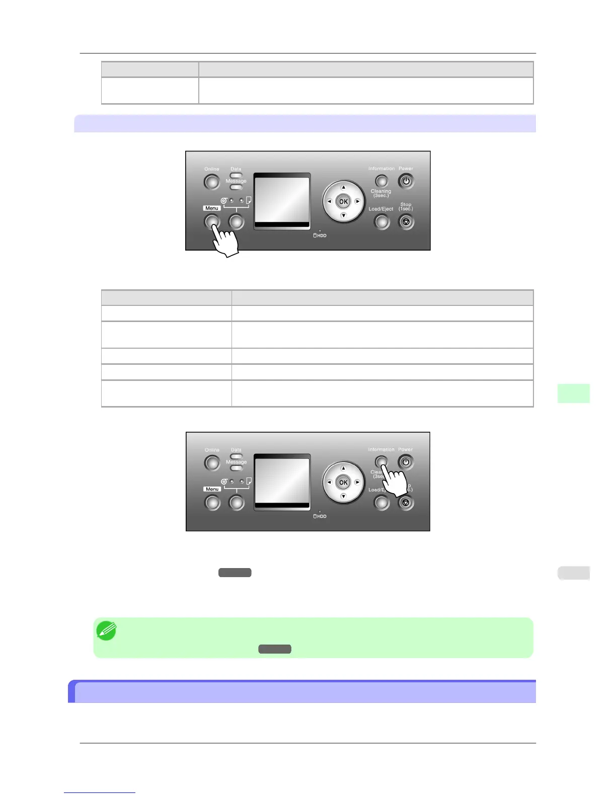 mation on the loaded paper and the printer. Press the Information button repeatedly to change the information dis-