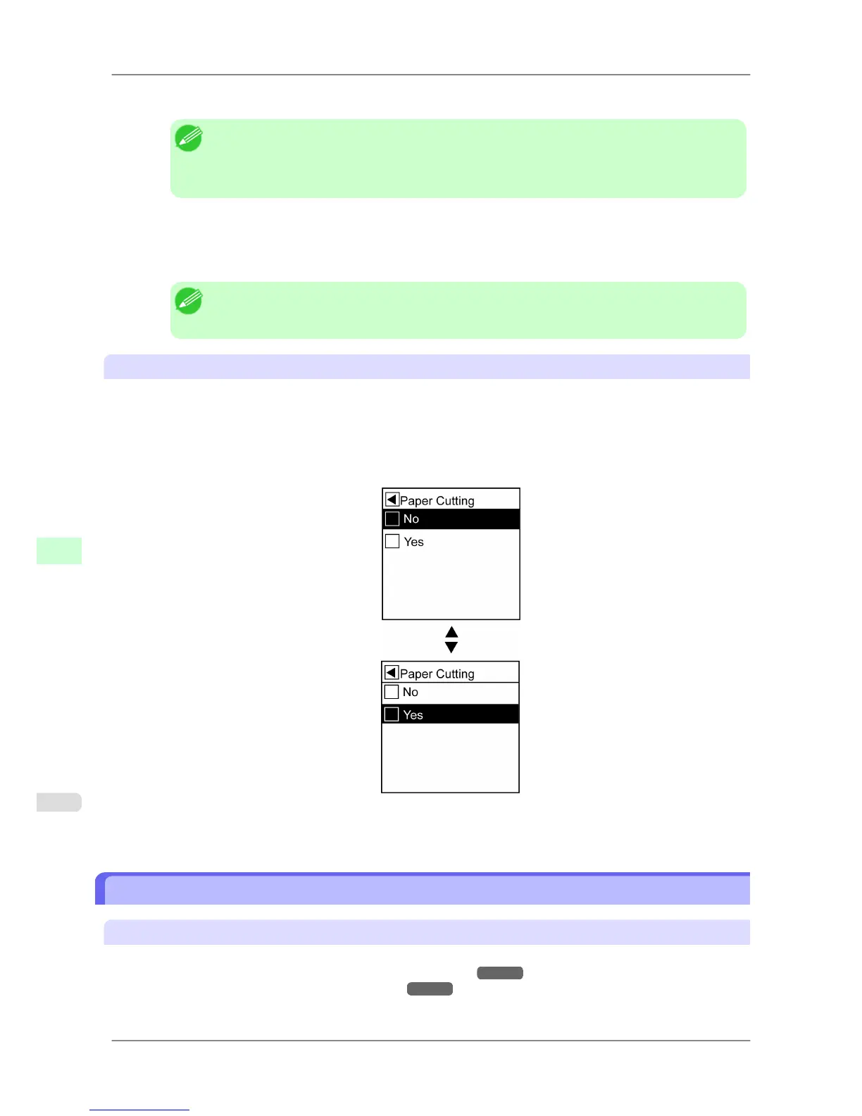 After two seconds, the menu command is executed. After commands are executed, in most cases the printer re-