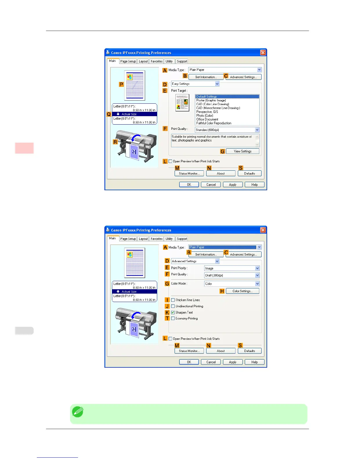 Choosing the Document Type and Printing Conditions (Windows) iPF825