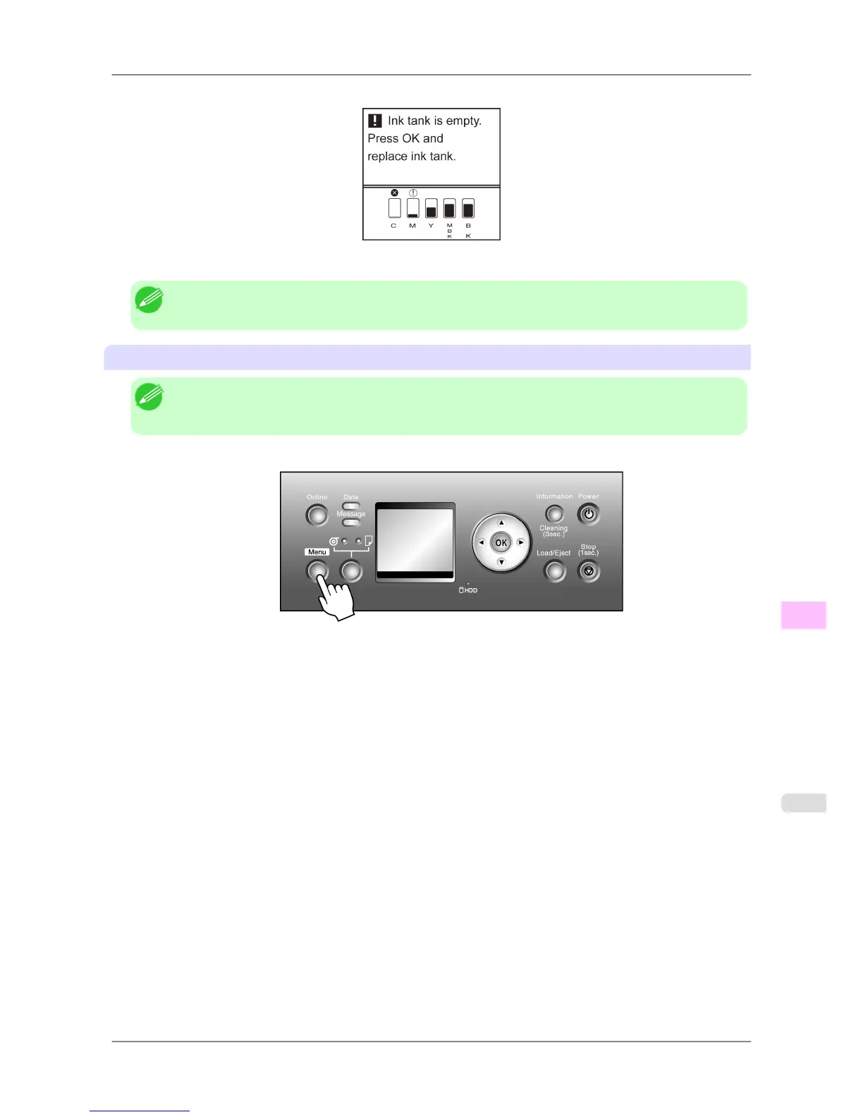 If a message requests you to replace ink tanks, press the OK button.