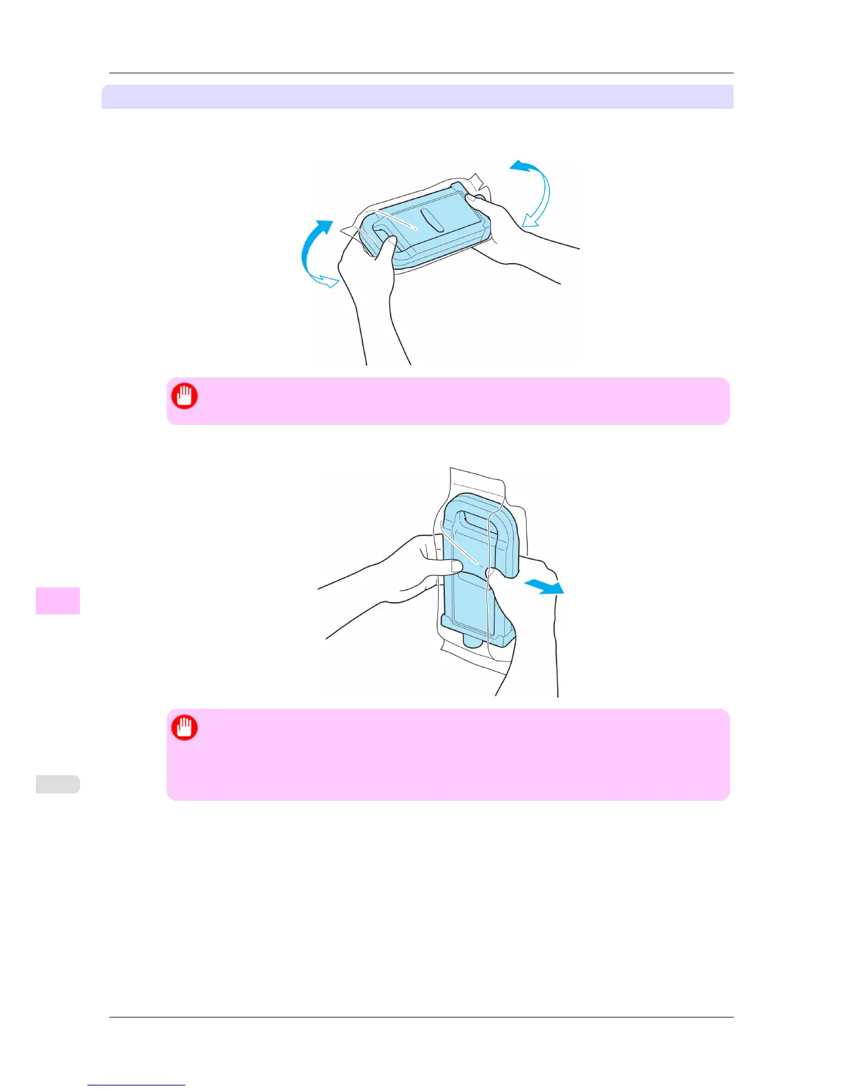 • Do not remove and agitate ink tanks that have already been installed in the printer. Ink may leak