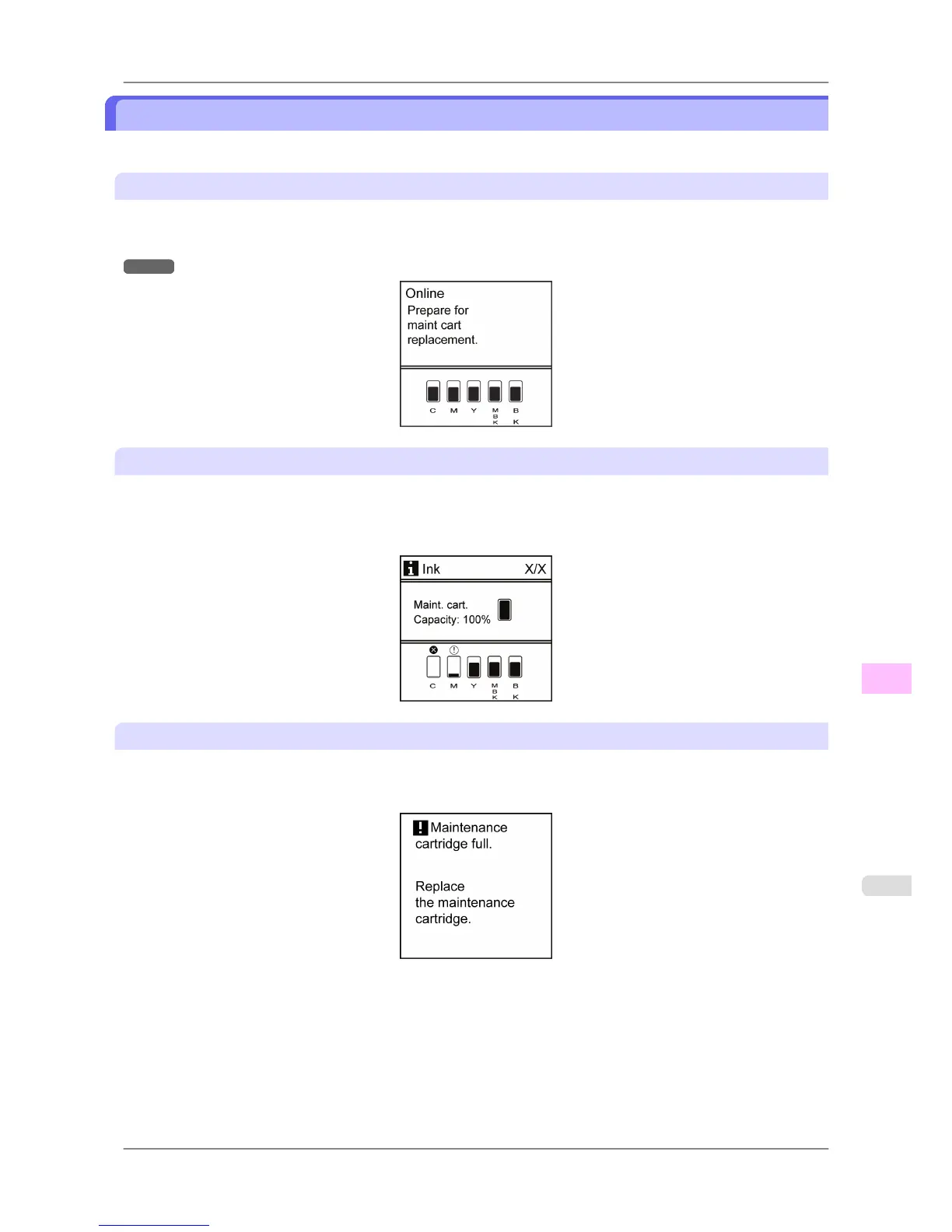 is displayed. You can continue to print, but check the remaining Maintenance Cartridge capacity and prepare to replace