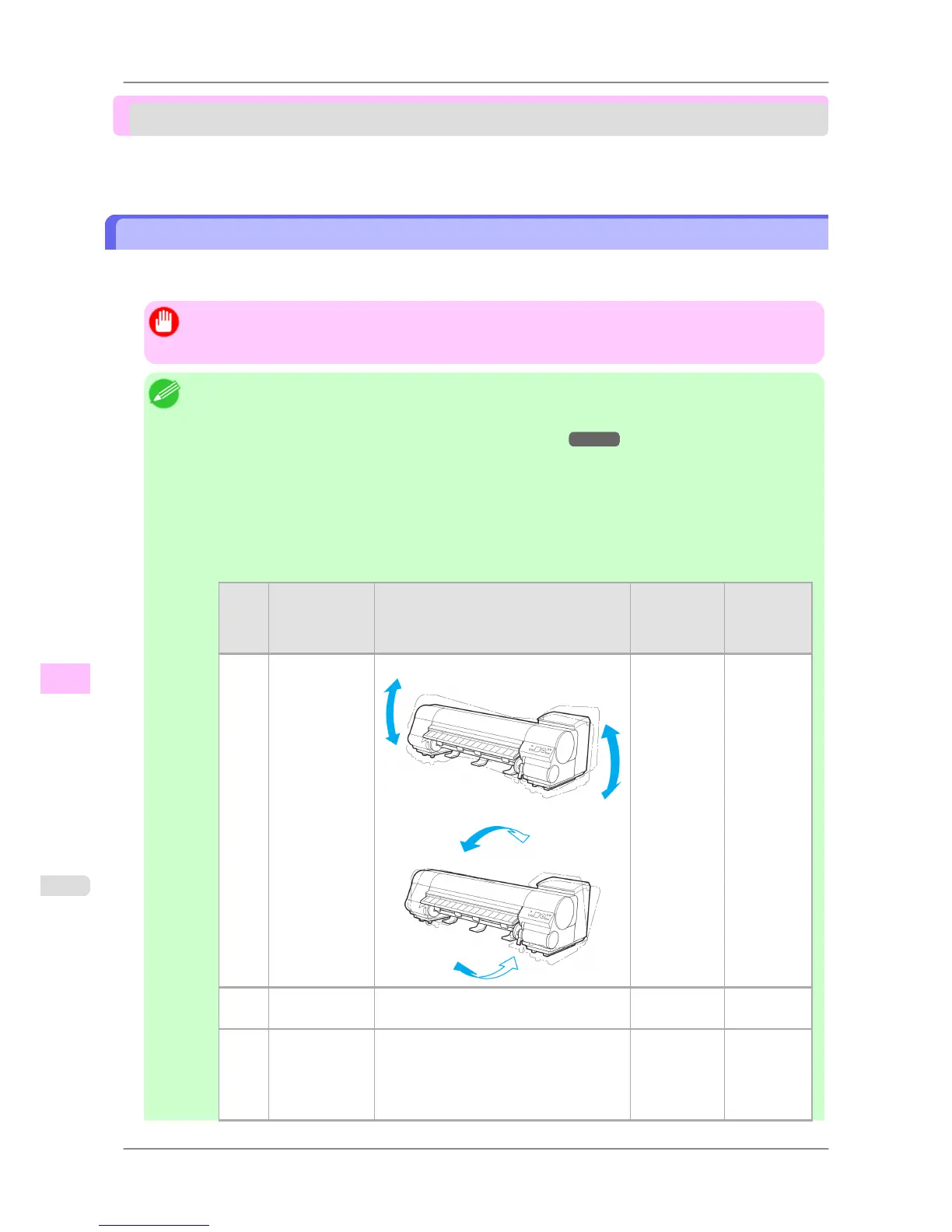 • Be sure to contact your Canon dealer before transferring the printer to a new location. Ink may leak and