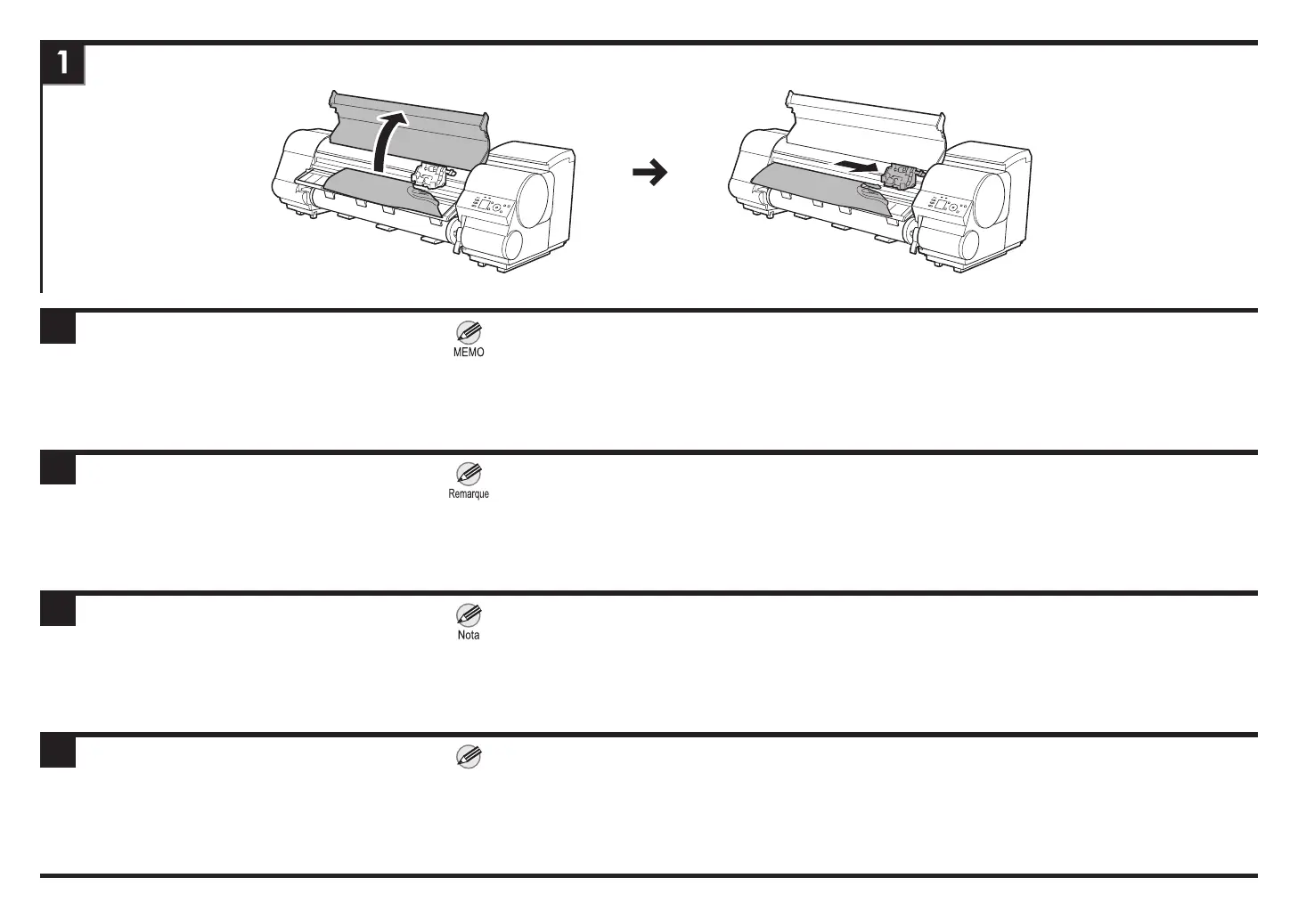 ① Apague la impresora y abra la cubierta superior. ② Si el carro está fuera, aparte el carro con la mano para