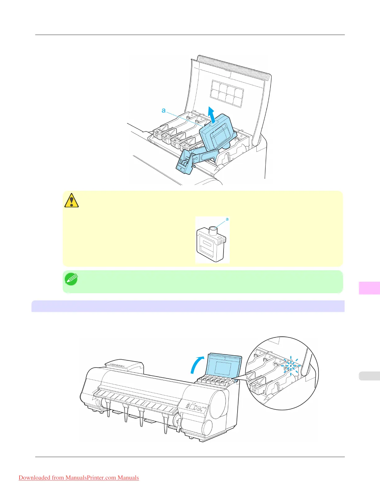 3. Hold the Ink Tank by the grips (a) and remove it. Press the OK button.