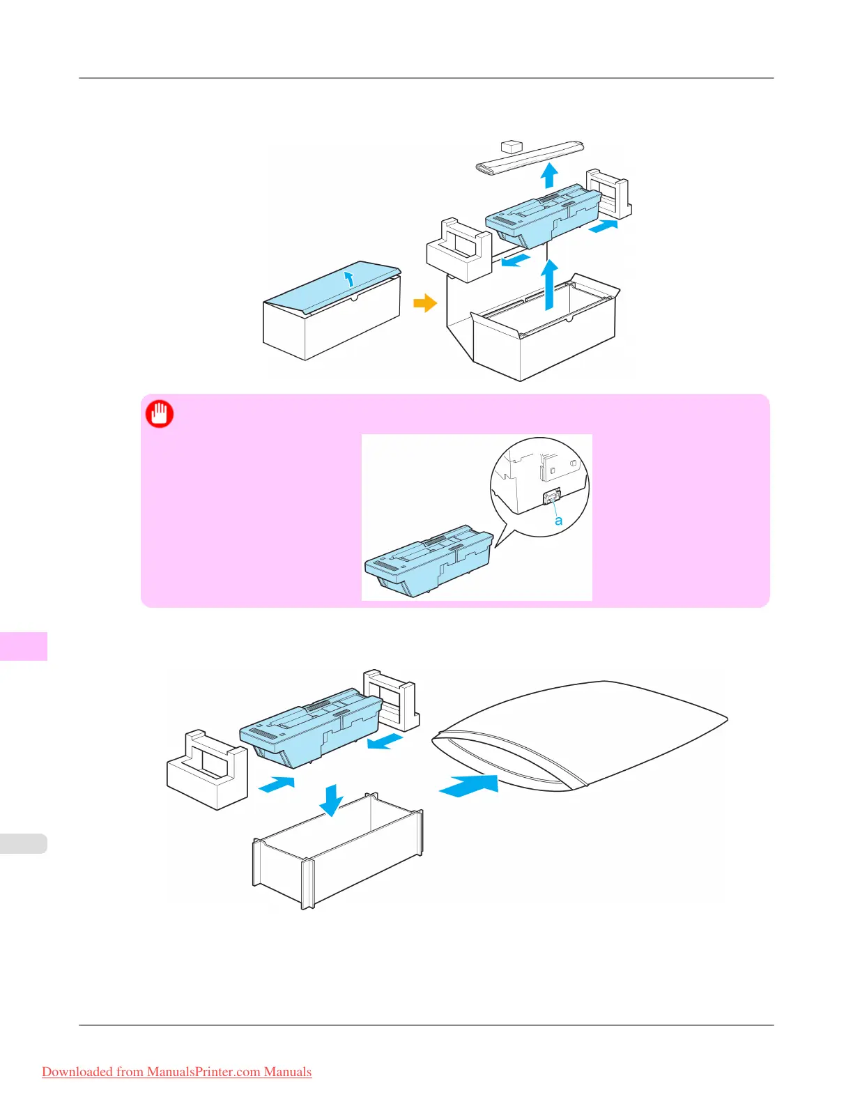 4. Attach the packaging material to the used Maintenance Cartridge and put it in the box. Keep it level as you put it in