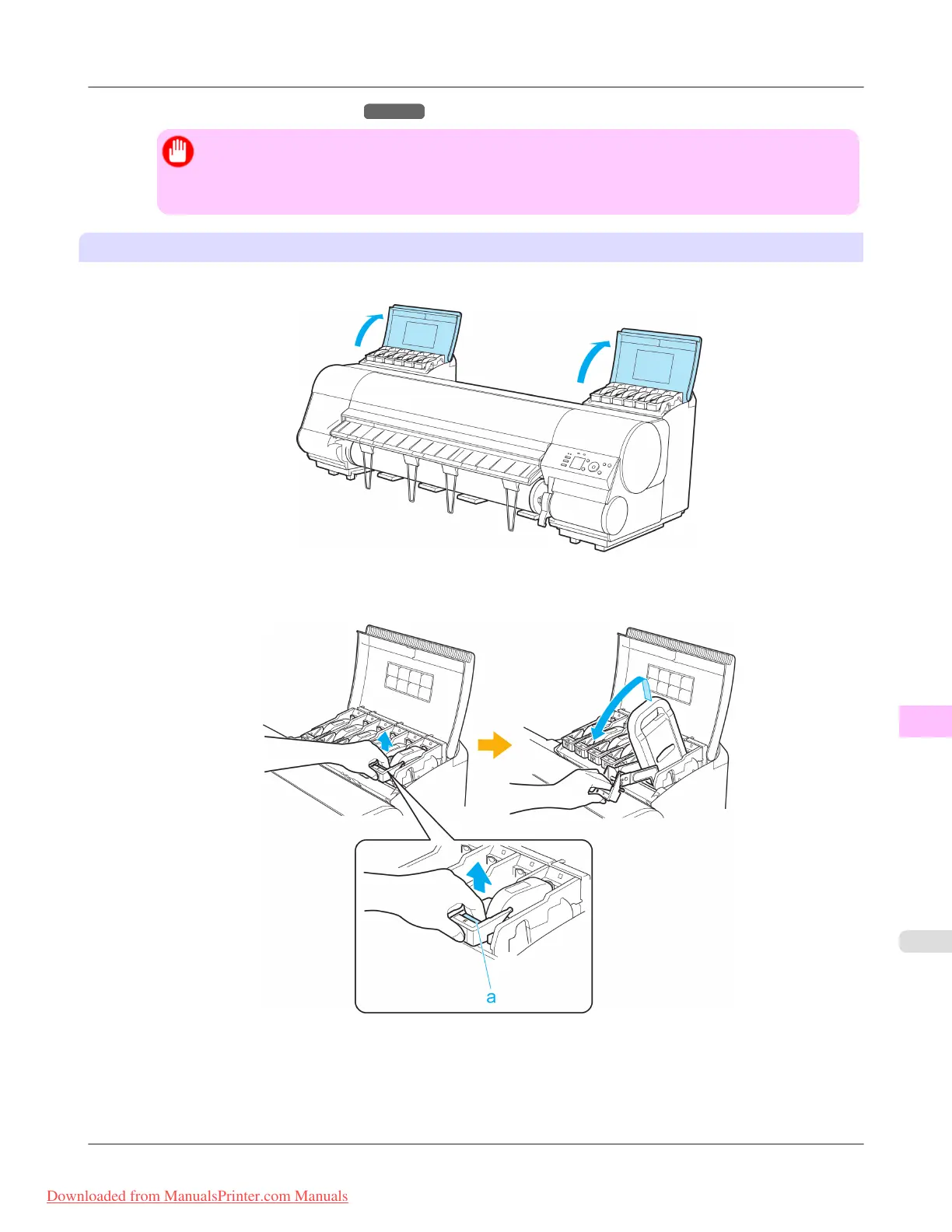 2. Lift the stopper (a) of the Ink Tank Lock Lever (a). Lift the Ink Tank Lock Lever until it stops, and then push it
