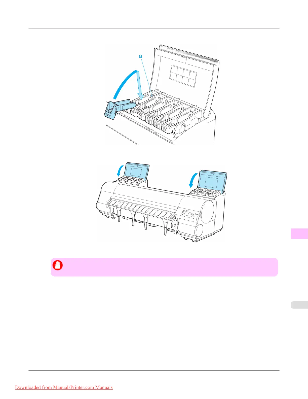 5. Push down the release lever (a) as shown as you gently return all ink tank lock levers to the original position.