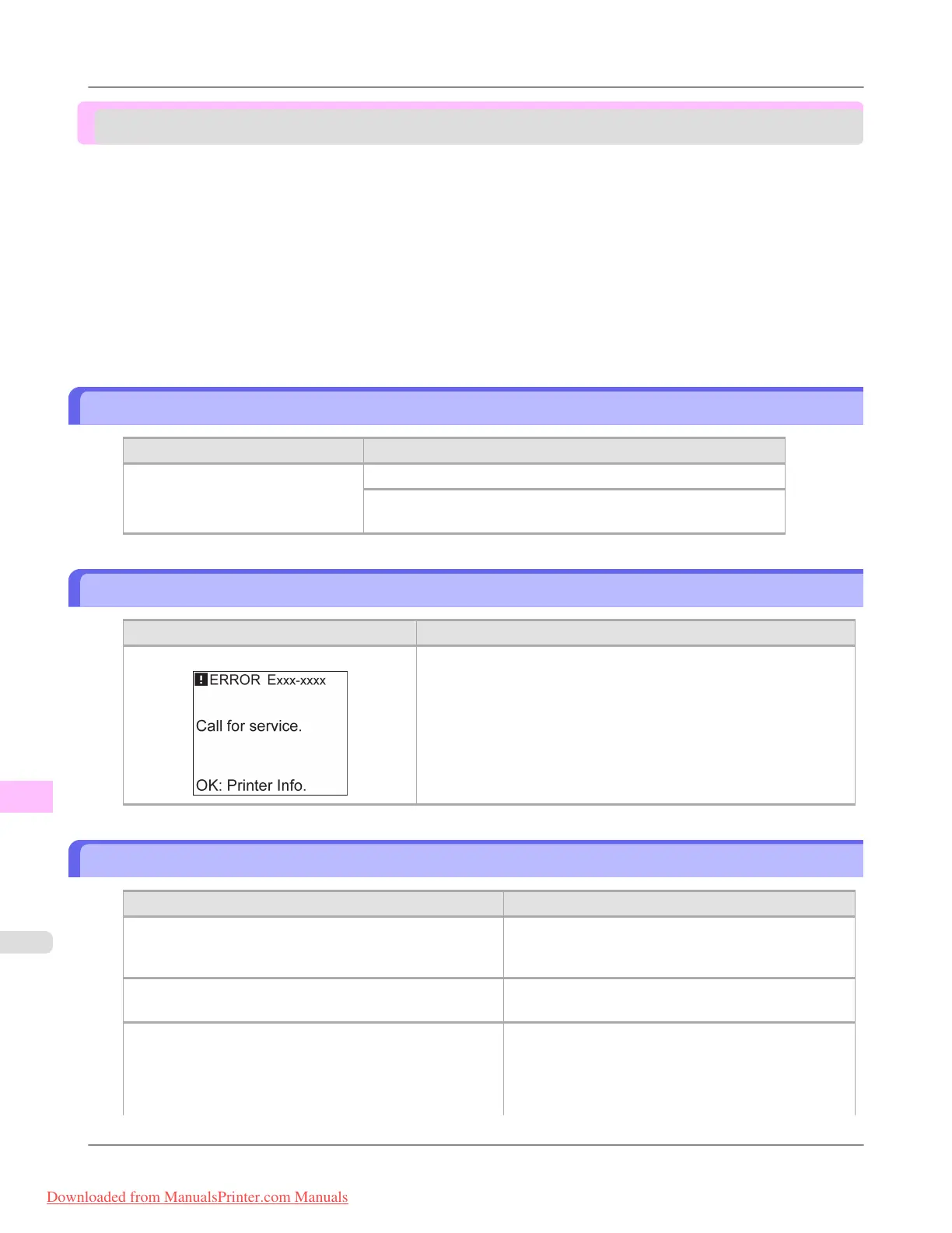 An error requiring service may have occurred. Write down the error code and message, turn off the printer, and con-