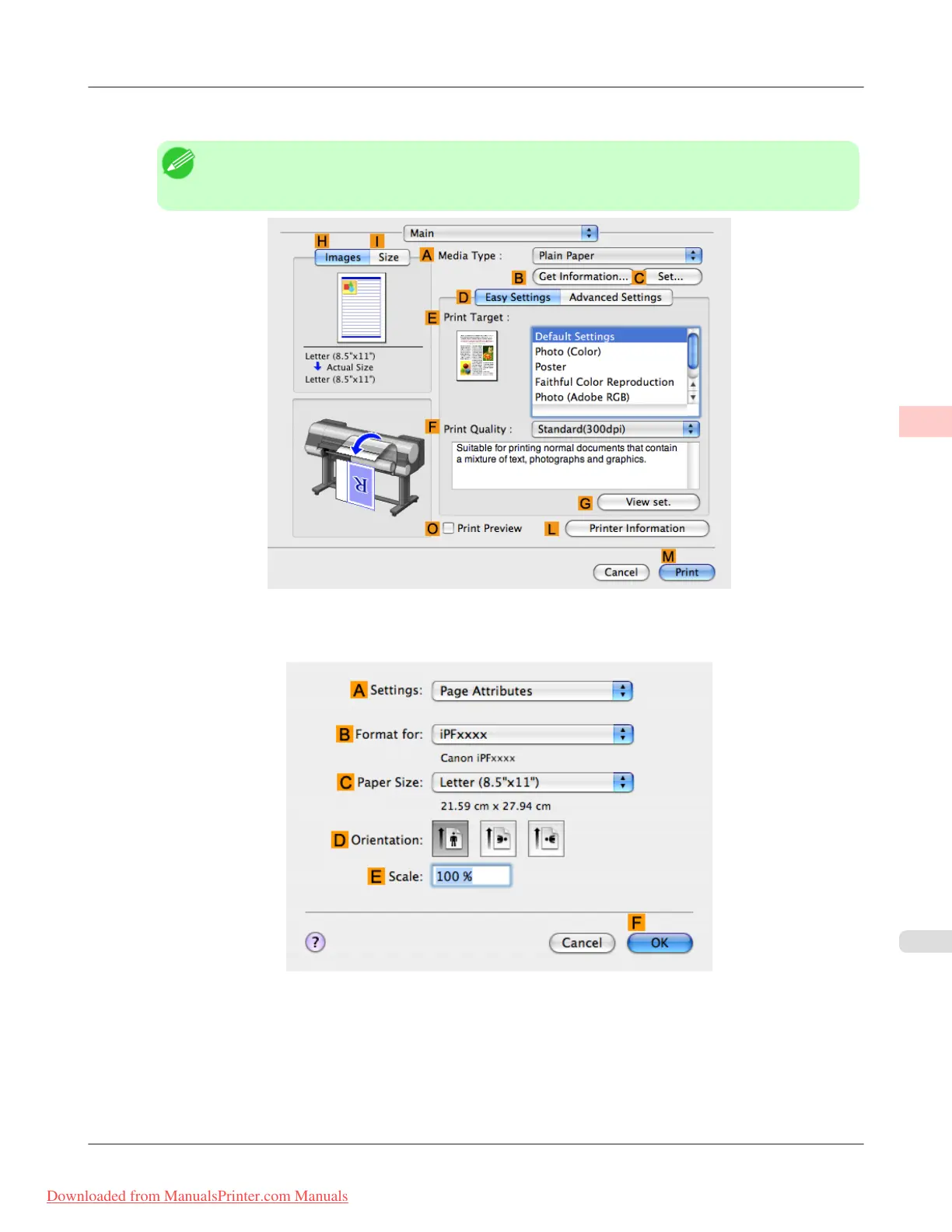 iPF8300 Borderless Printing by Resizing Originals to Match the Paper Size (Mac OS X)