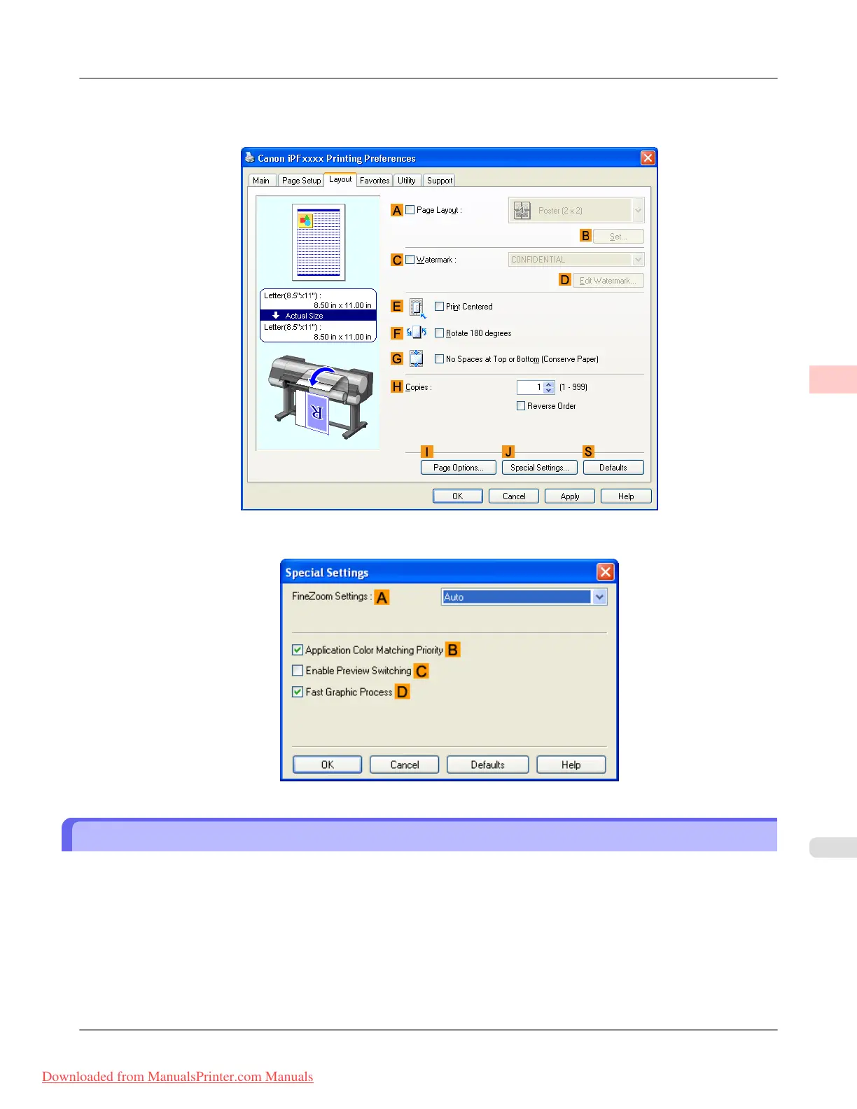 1. On the Layout sheet, click J Special Settings to display the Special Settings dialog box.