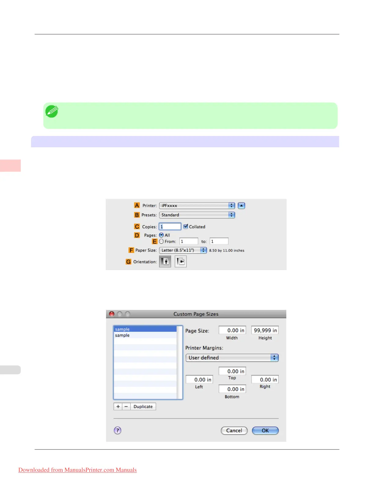 2. Register a Custom Page Sizes (Mac OS X 10.3.9-10.5)/ Custom Paper Sizes (Mac OS X 10.6).