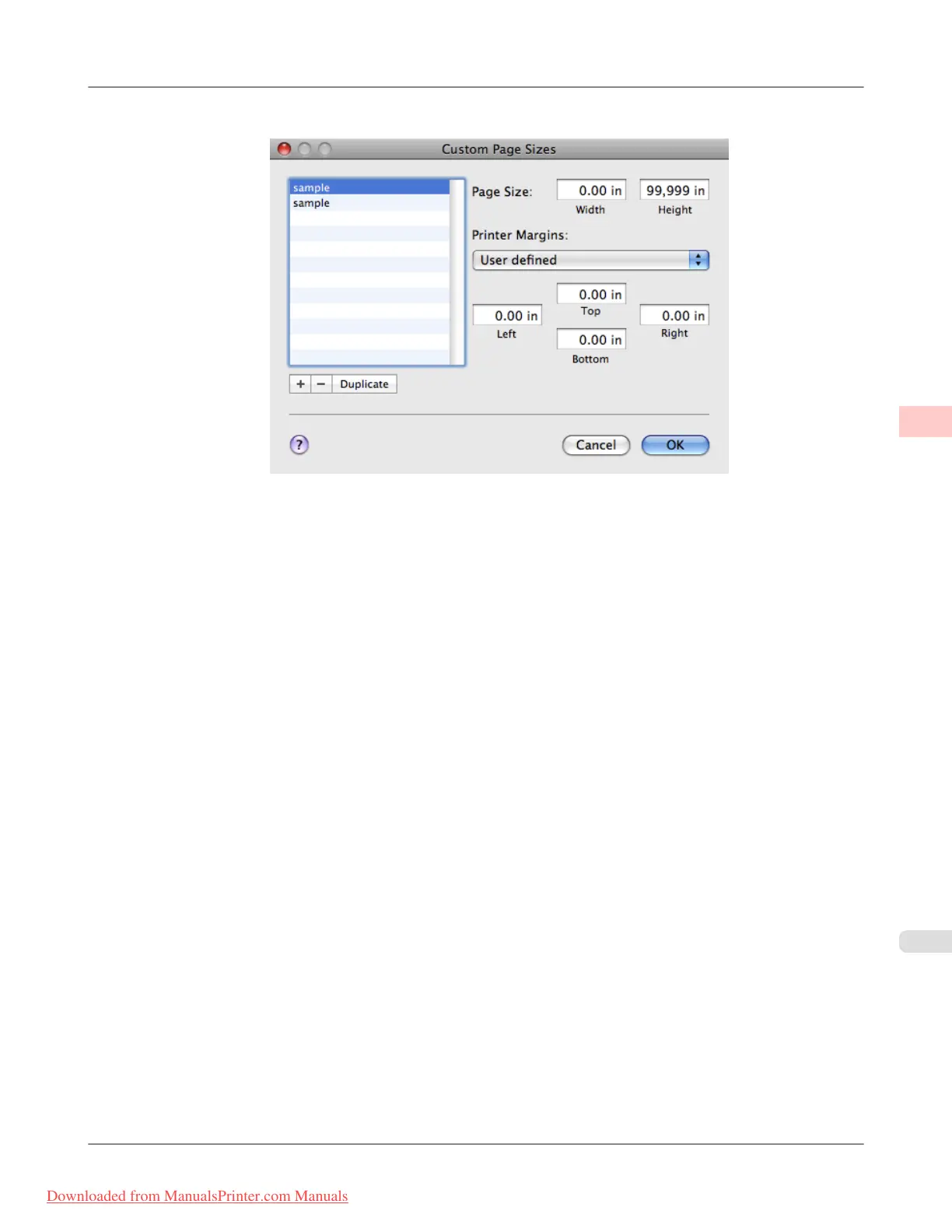 5. Click Manage Custom Sizes in the C Paper Size list to display the Custom Page Sizes dialog box.