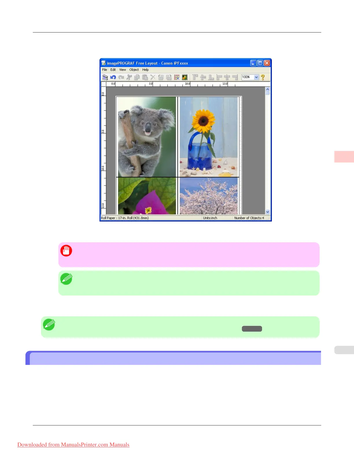 • For details on imagePROGRAF Free Layout functions, refer to Free Layout →P.255 .