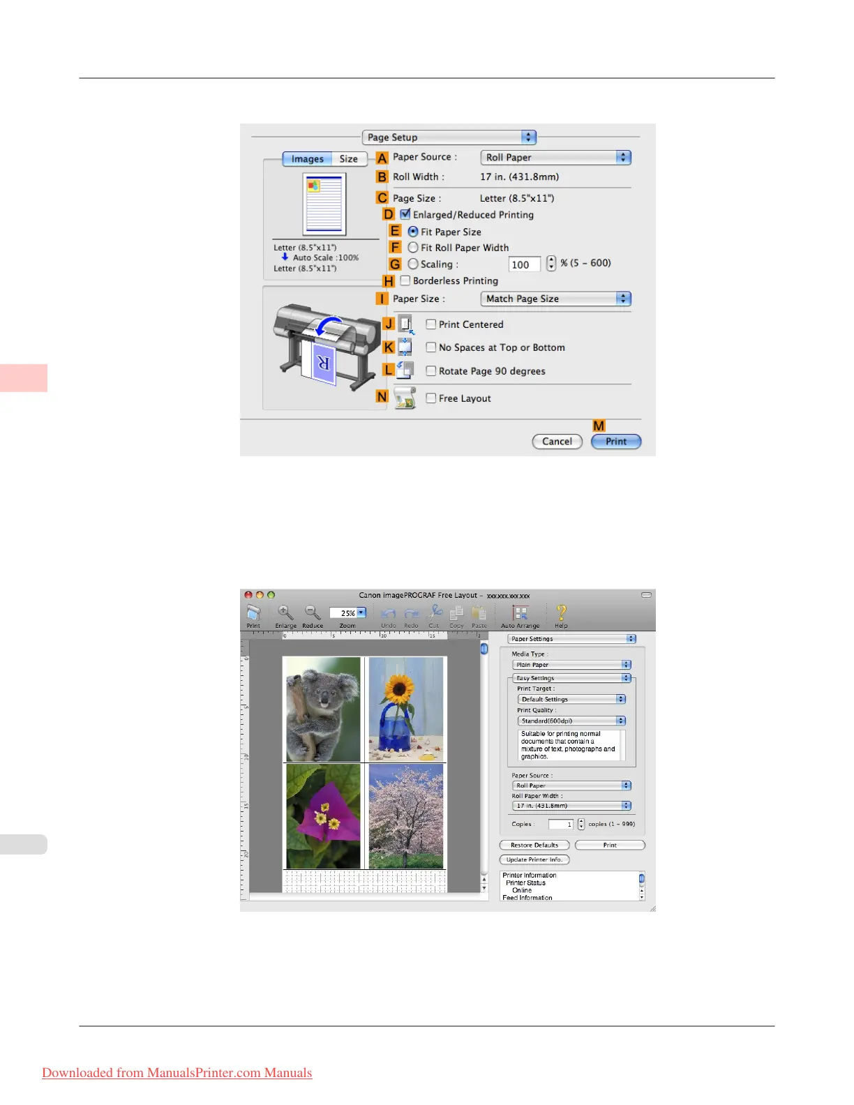 5. The Canon imagePROGRAF Free Layout window is displayed.