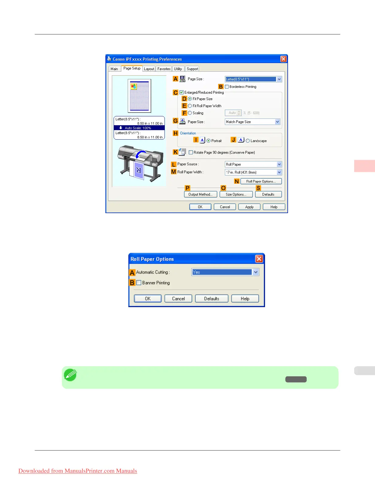 7. Click N Roll Paper Options to display the Roll Paper Options dialog box.