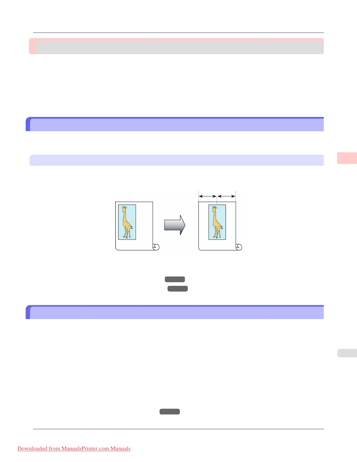 You can print originals centered on a page—for example, if the paper is larger than the original, or if you are reducing the