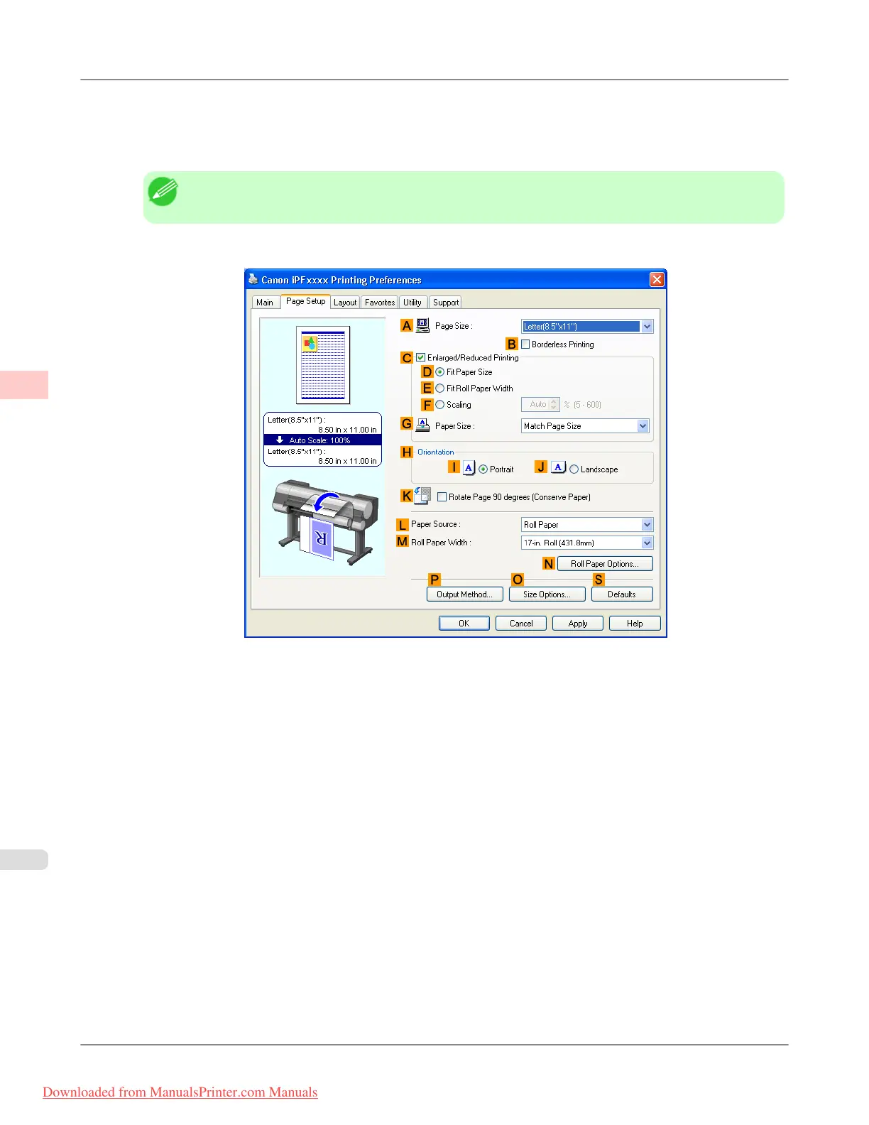 7. In A Page Size, click the size of the original as specified in the application software. In this case, click ISO A2.
