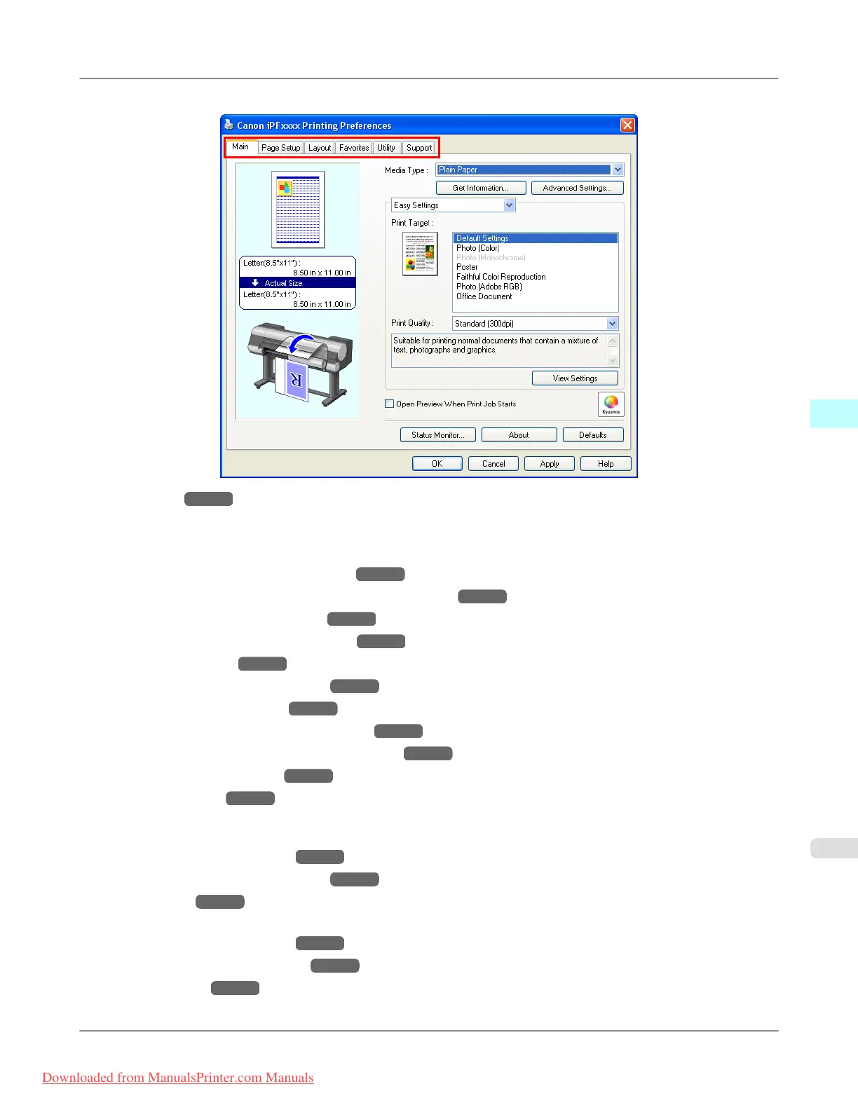 tings to specify basic print settings based on the printing application or Advanced Settings to complete more detailed